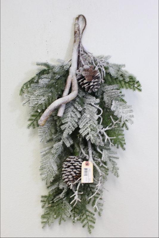 28" PINE/CONE/BRANCH SNOW TEARDROP