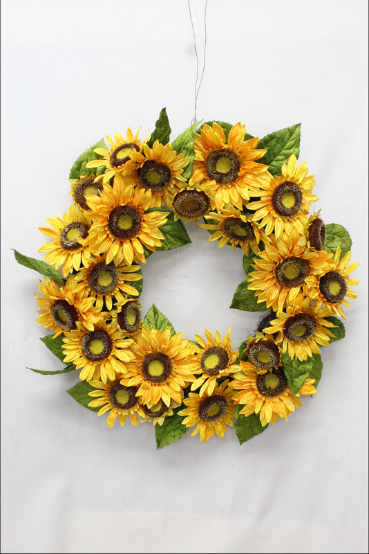 28IN SUNFLOWER/LVS WREATH W/PL
