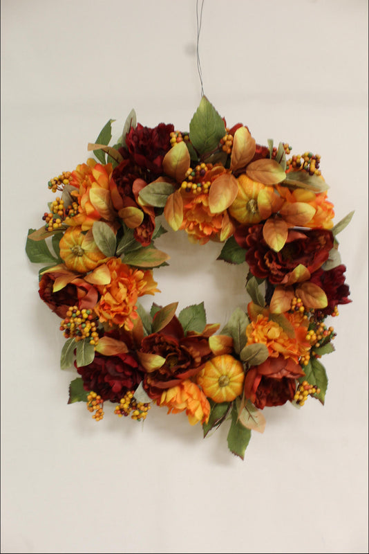 PEONY/PUMPKIN/LVS WREATH 24"