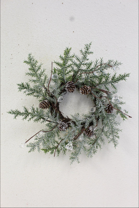 4.5”PINE/CONE W/SNOW Candle Rring