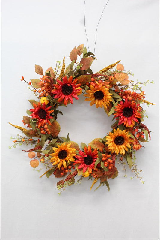SUNFLR/PUMPKIN/BRY WREATH 22"