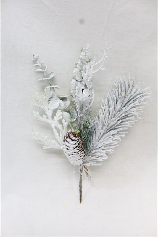 14" PLASTIC SNOWED PINE W/ PINE CONE PICK
